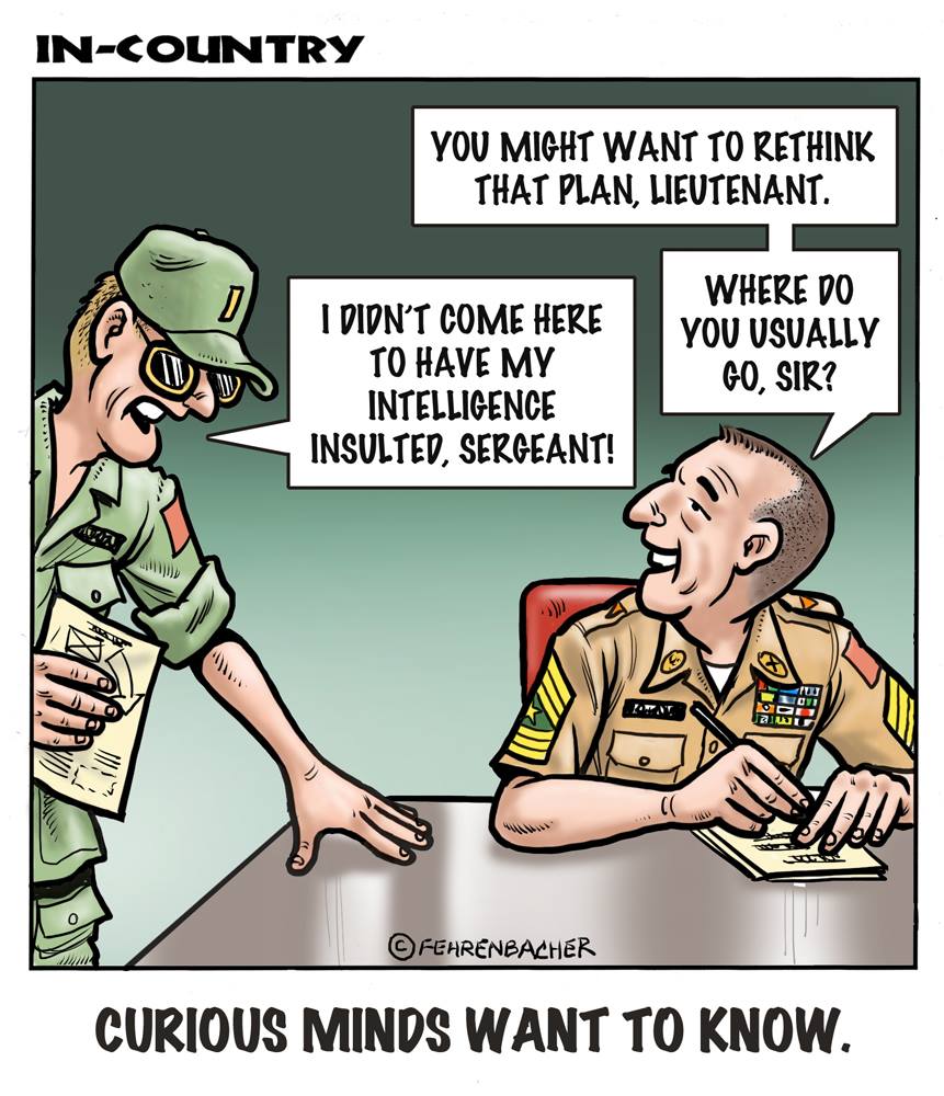 Phil enlisted in the Army in 1965 where you served for years in Vietnam.  He became a graphic designer and has worked for the state of Oregon for 26 years.  He retired in 2003 and started the Cartoon "In-Country".  The cartoons reflect his experiences during his tour of duty in South Vietnam.