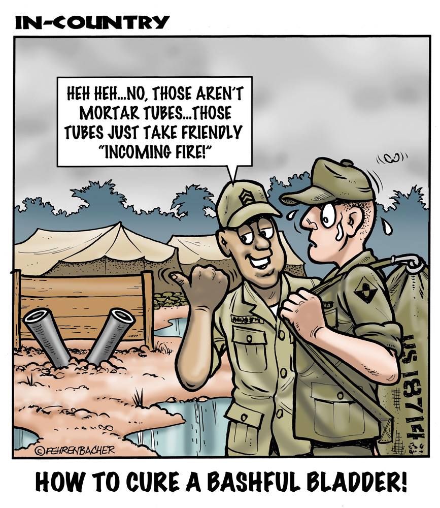 Phil enlisted in the Army in 1965 where you served for years in Vietnam.  He became a graphic designer and has worked for the state of Oregon for 26 years.  He retired in 2003 and started the Cartoon "In-Country".  The cartoons reflect his experiences during his tour of duty in South Vietnam.